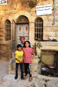 عبر دروب ضيقة وأزقة جميعها من المباني التراثية بدأنا التجوال في ذاكرة سلواد حتى وصلنا إلى مركز العاصور لإحياء التراث والذي تأسس عام 2011م، وهو واقع في نهاية زقاق من الأبنية التراثية، والمركز في مبنى تراثي صغير وجميل، ولكنه مغلق منذ زمن ولا يوجد به أحد فسألنا حاجة تسكن بجواره عنه فنادت على طفلة من البيت المقابل، طفلة رائعة وجميلة وذكية حفظها الله وعرفتنا على اسمها يسرى عيسى عفيف حماد وحين عرفت مقصدنا وما اقوم به تطوعت لاحضار المفتاح التراثي لنفتح المركز وندخله، والمركز في بيت من العقود القديمة المتصالبة من غرفة واحدة من بوابة قوسية ونافذتين على جوانب الباب من النوافذ التراثية القوسية والطولية، وعلى أعلى الباب حجر منقوش عليه عبارات دينية وتاريخ البناء 1355ه وعلي يساره مبنى من عقد قد تهدم، والباب معدني تراثي قمنا بفتحه بمفتاح تراثي ضخم، وعلى يمين المركز مبنى تراثي مرتفع وتحته غرفة مهملة تماما، ومبنى المركز تعود ملكيته للسيد راجح محمود أبو شوب وداخل المركز كانت بيوت العناكب تملأ النوافذ والزوايا، فالعناكب وجدت ضالتها بهذا المكان المهجور، ولكن صاحبة المركز وكما افادتنا الطفلة يسرى اسمها روزا وهي من سلواد ولكنها هاجرت لأمريكا منذ سنوات وبقي المركز مغلقا، وواضح ان صاحبة المركز كانت مهتمة به في البداية فقد صممته من الداخل بشكل جميل حيث قطع بلاستيكية تغطي السقف والجدران، وتركت العديد من القطع التراثية على الجدران منها أثواب وسجادة وقطع مطرزة ومنها قطعة لآية الكرسي، إضافة لعدة صناديق من بقايا أغلفة قنابل الغاز والصوت التي استخدمها الاحتلال ضد الشباب لقمع المسيرات والتظاهرات، واقترح على البلدية والتي تشرف على متحف التراث في سلواد أن تنقل هذه المواد من المركز للمتحف قبل أن تبلى تماما.