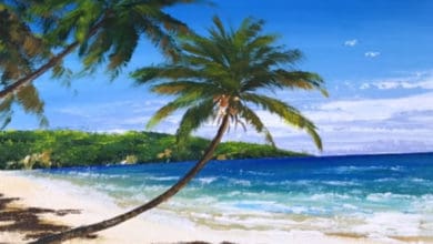 طريقة رسم ساحل استوائي ساحر بالألوان الزيتية